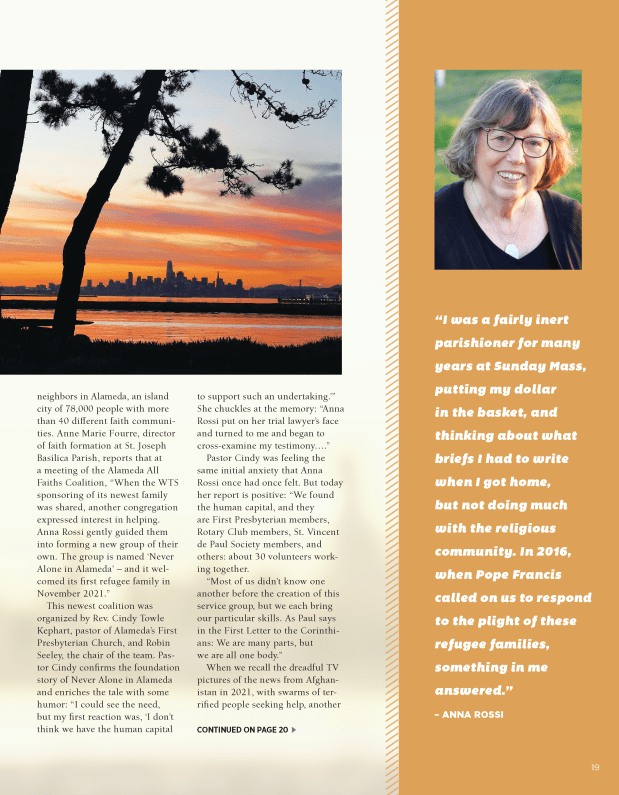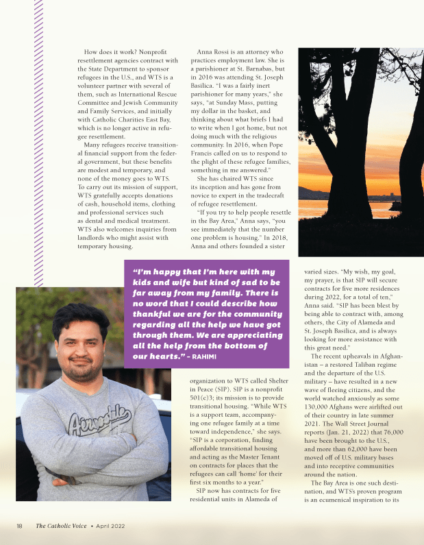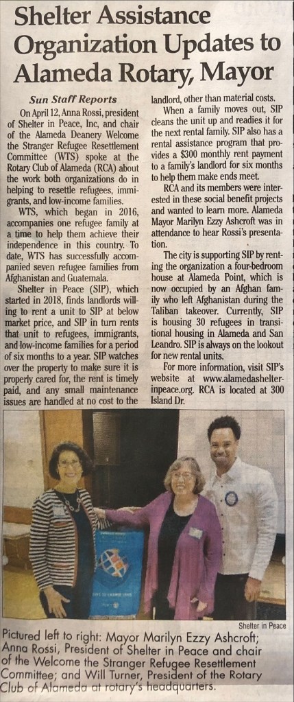 Shelter in Peace has placed two families, one from Haiti and one from Afghanistan, in a beautiful two bedroom, one bathroom unit in the heart of Alameda. It is a unit filled with light and warmth, and comes from the graciousness and compassion of St. Joseph Basilica. It is perfect for small families.
