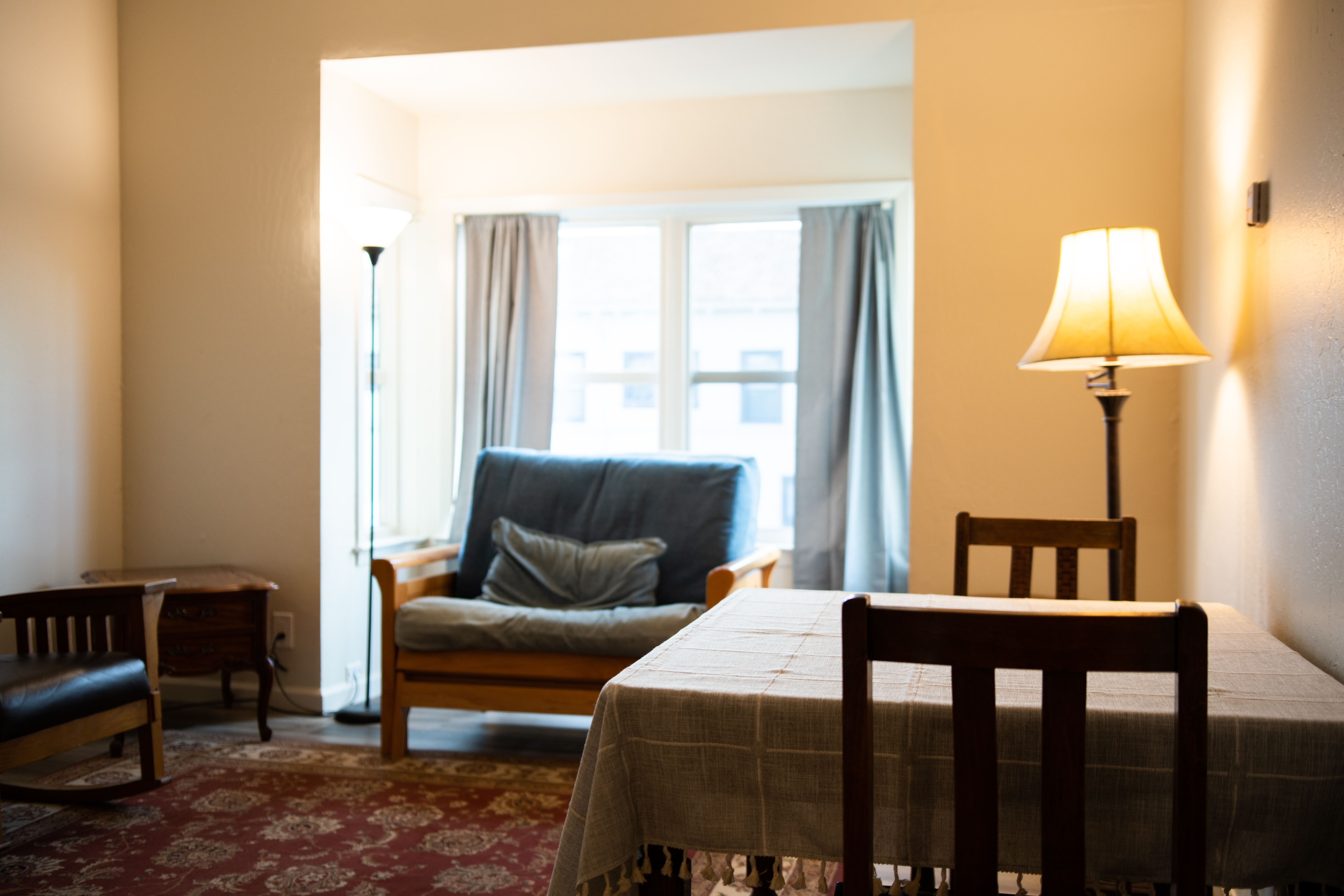 An older craftsman three bedroom one bathroom unit in the heart of Alameda has been a lovely resting place for four refugee families in the past three years. One family was from Guatemala, one from Mexico, and two from Afghanistan. They have all loved the ease of access this house provides to shopping and schools, and the warmth of its lovely dark wood details. It has a large kitchen, formal dining room, and large living room. It feels like a true home to our new families.